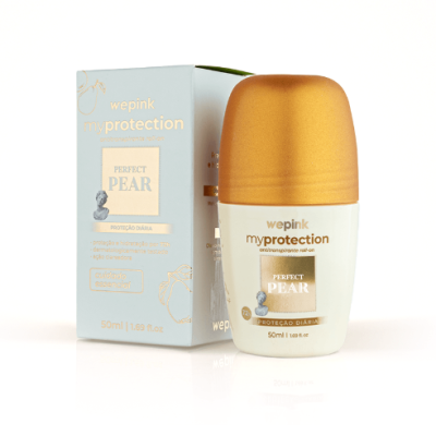 O Desodorante Antitranspirante Roll-on Myprotection Wepink Perfect Pear oferece uma combinação revigorante de frescor, proteção duradoura e hidratação por 72 horas, além de uma fórmula exclusiva que contribui na uniformização do tom da pele. Tudo isso, em um caminho olfativo floral frutado único, em um toque suave de violeta e um fundo doce e amadeirado.