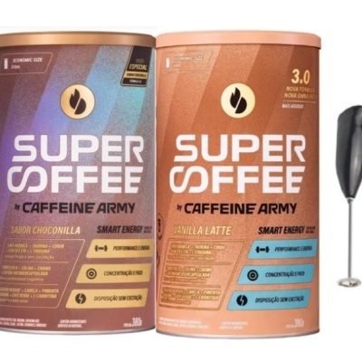 Kit SuperCoffee 380g Vanilla + Choconilla+ Mini Mixer Caffeine Army✅PRONTA ENTREGA
